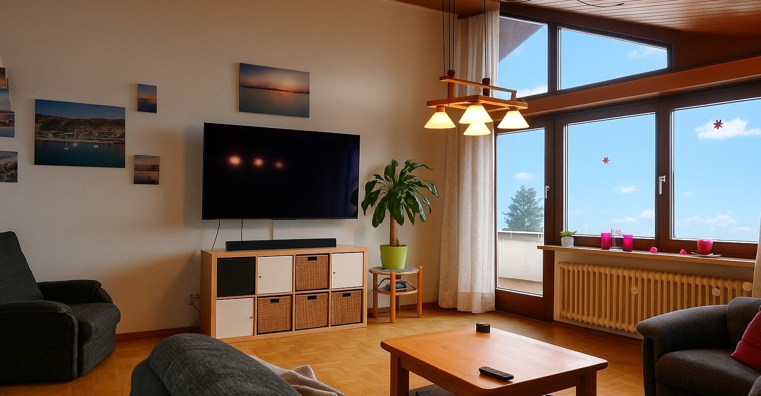 Diese lichtdurchflutete Wohnung verbindet praktisches Wohnen mit einer schönen Aussicht.