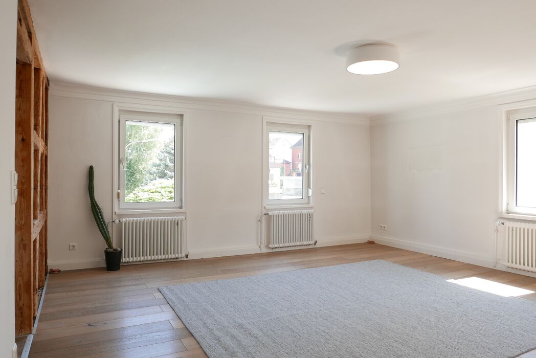 Das Obergeschoss überzeugt mit einer großzügigen Diele, einem hellen Wohnzimmer, einer Küche mit Essplatz sowie einem weiteren Büro, das ruhiges Arbeiten von zu Hause ermöglicht. Das große Schlafzimmer verfügt über eine angeschlossene Ankleide und ein modernes Badezimmer mit integrierter Sauna ein privater Rückzugsort mit hohem Komfort.