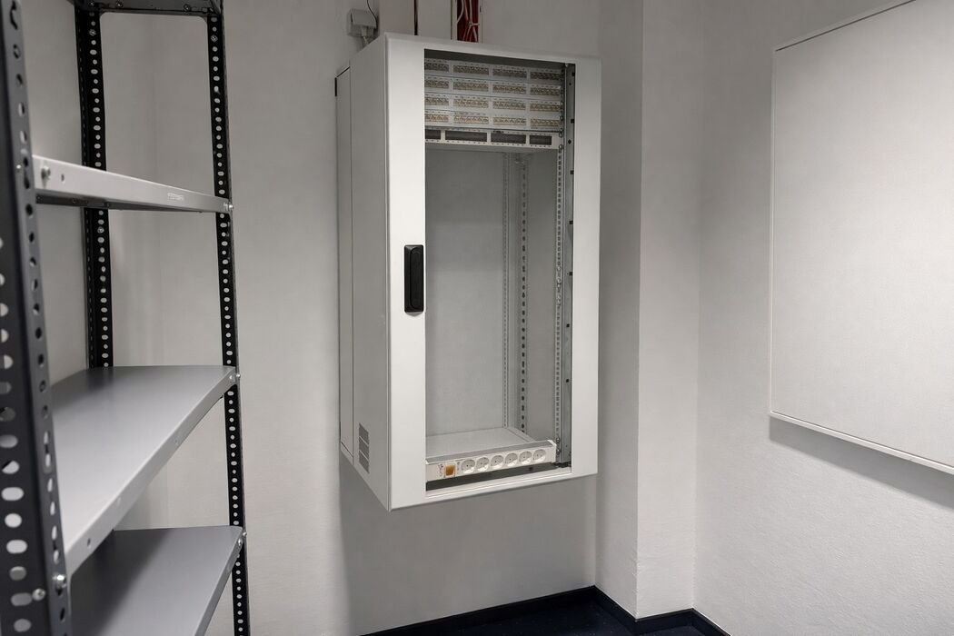 Hochwertige Ausstattung mit Teppichboden/teilweise Parkett, Büroschränken, Raumteilern, Akustikdecken und modernem Beleuchtungssystem. Flexible IT- und Elektroverkabelung je Arbeitsplatz, Teeküche sowie separater Serverraum vorhanden.