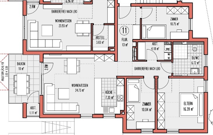 Die Wohnungen sind hochwertig ausgebaut und verfügen je über eine Einbauküche, Fußbodenheizung, Parkett- und Fliesenböden, Waschmaschinen- und Trockneranschluss in der Wohnung und je einen Balkon oder Terrasse.